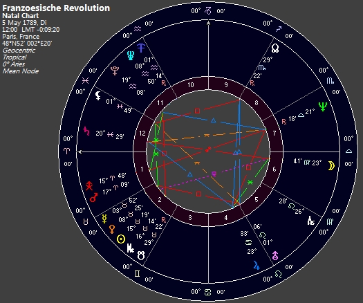 Freiheit Gleichheit Brüderlichkeit, der Schlachtruf der französischen Revolution ist gleichzeitig eine exakte Beschreibung dessen, was der Planeten Uranus in unseren Köpfen und Herzen bewirken kann. Planet Uranus wurde am 13. März 1781 von Herschel entdeckt.Die Ente Entdeckung vollzog sich unter einem Aspekt von Mars und Saturn in Opposition Uranus, des neuen Objektes. Außerdem stand die Sonne im Quadrat. Zusätzlich bewegte sich Neptun ebenfalls im Quadrat. D.h., Uranus stand zu gewissen Uhrzeiten mehr oder weniger alleine am sichtbaren Sternenhimmel. Das Pluto vor kurzem in den Wassermann eingetreten war, begünstigte wissenschaftliche Untersuchungen im Zusammenhang mit dem Planeten Uranus aber auch im Gebrauch neuer Techniken. Die kommenden Jahre wanderte Uranus dann zunächst durch das Sternzeichen Krebs. Hier mag er Unruhe, Unmut und Unzufriedenheit im Volk verursacht haben, die sich schließlich, rechtzeitig zum Eintritt des Uranus in den Löwen in der französischen Revolution entledigt. Vorangegangen waren unpopuläre Veränderungen im Herrschaft und Machtsystem in Frankreich.